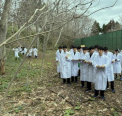 啓成高校のアーチェリー場付近の森林で春の植物や樹木の観察を行いました。